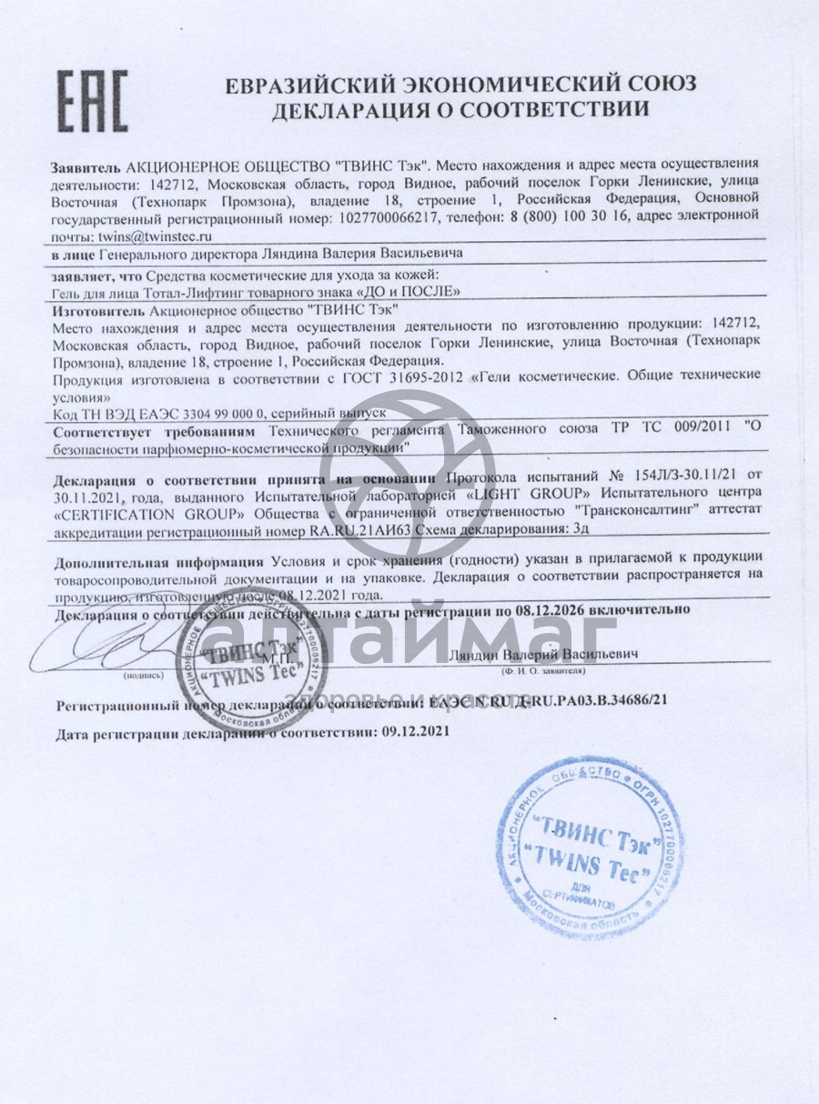• Купите До и после тотал-лифтинг гель для лица 50 мл в Ярославле по доступной цене 282 ₽ с доставкой на дом или заберите Ваш заказ в Ярославле из ближайшего пункта выдачи, сделав заказ на AltaiMag.ru.