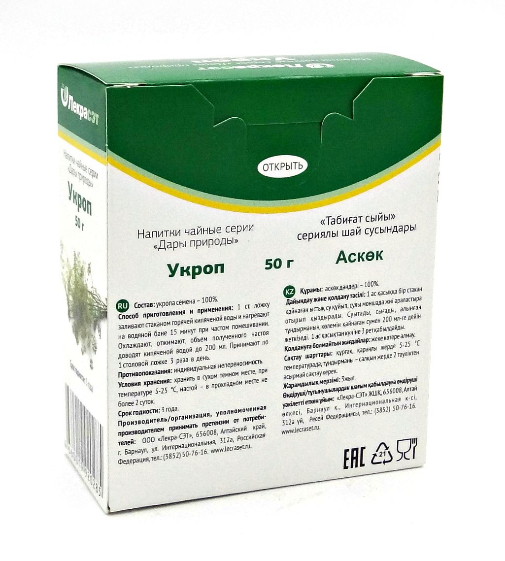 • Чтобы купить Укроп (семена) чайный напиток, 50 г совершите всего несколько шагов: укажите количество продукта и нажмите на кнопку «Купить».